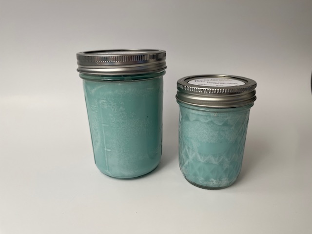Refreshing ocean breeze in a light blue candle, perfect for creating a clean, calming home atmosphere.